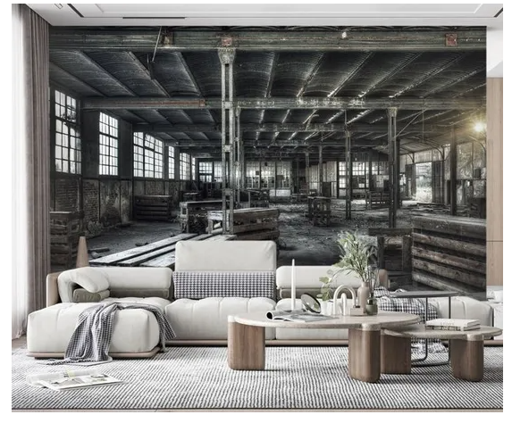 • Fresques abstraites ou géométriques grand format : des motifs audacieux qui occupent tout un mur, comme des compositions fragmentées ou colorées.