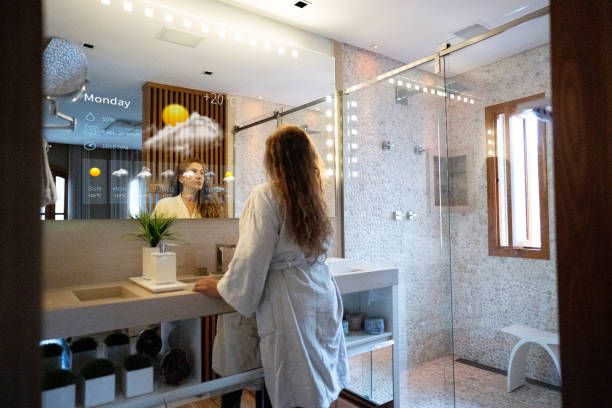- Interfaces invisibles intégrées aux surfaces (miroir de salle de bain tactile, table basse interactive).